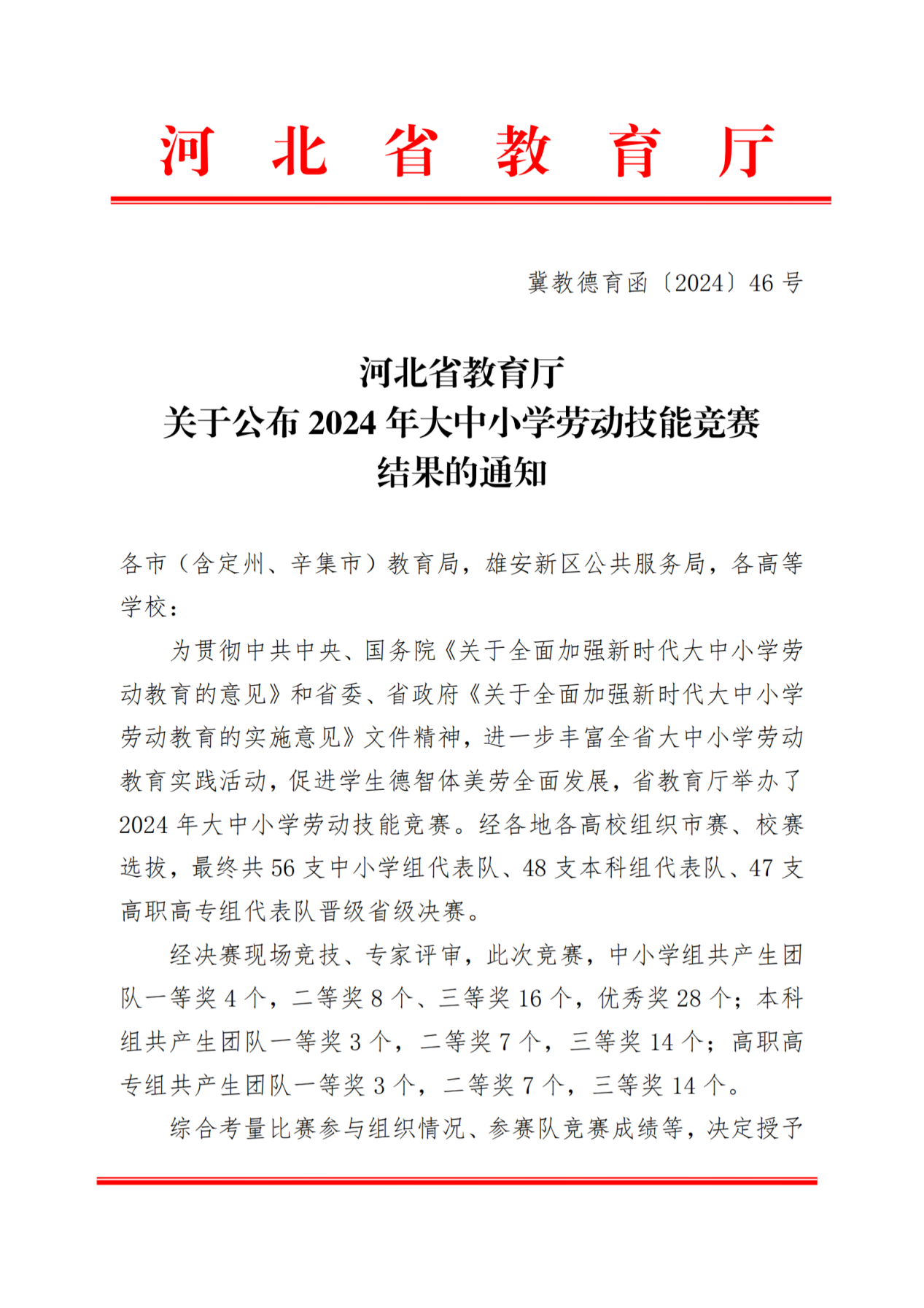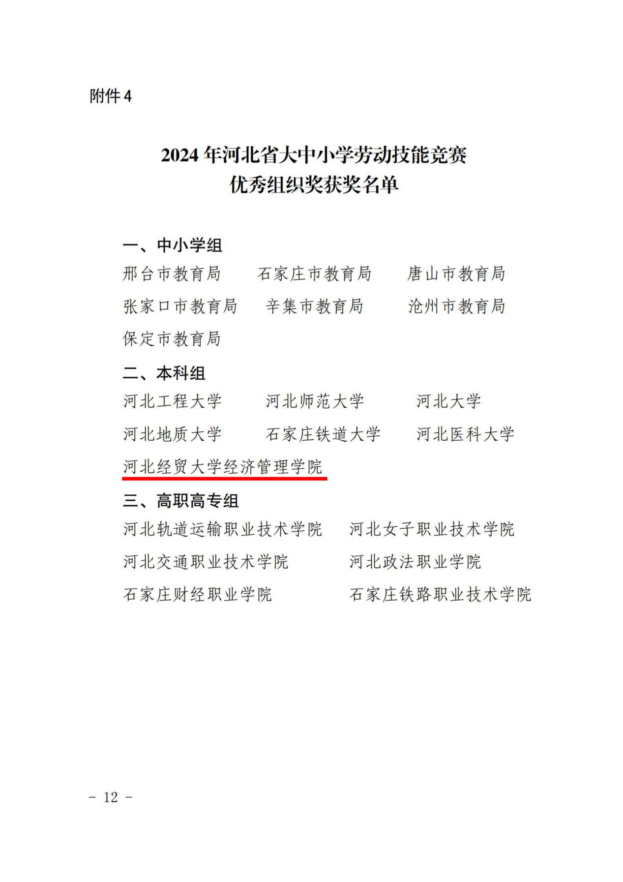 近日,河北省教育厅公布2024年大中小学劳动技能竞赛结果,开云官网获得河北省劳动技能竞赛(本科组)团体二等奖,并被评为优秀组织奖,取得参加河北省劳动技能竞赛历史最好成绩。