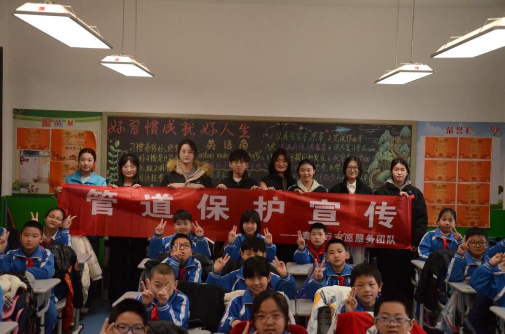 为进一步提升国家石油天然气管道沿线公众“不伤害管道、不被管道伤害”的管道保护意识和自我防护能力,贯彻落实少年儿童安全守护计划,为孩子们的成长保驾护航,学院青益行志愿服务团队积极参与2024年全国“少年儿童安全守护计划”管道保护宣讲活动。11月18日,青益行志愿服务团队和学院国护队在麒麟小学开展了一场管道保护志愿宣讲。