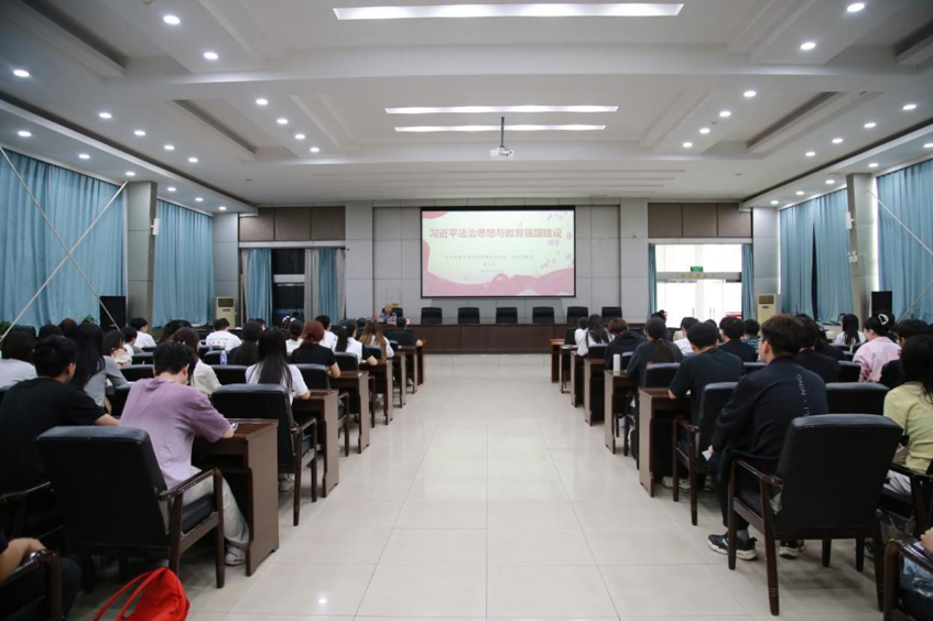 他带领师生系统梳理了习近平法治思想形成与发展的背景,详细解读了习近平法治思想的核心要义,他认为,习近平法治思想的“十一个坚持”内涵丰富、论述深刻、逻辑严密、系统完备,从历史和现实相贯通、国际和国内相关联、理论和实际相结合上深刻回答了新时代为什么实行全面依法治国、怎样实行全面依法治国等一系列重大问题。他进一步强调,教育、科技、人才是中国式现代化的基础性、战略性支撑,法治是中国式现代化的重要保障。在深入实施科教兴国战略、人才强国战略、创新驱动发展战略的过程中,必须弘扬社会主义法治精神,维护社会公平正义,全面推进教育领域各方面工作法治化。唯有如此,才能统筹推进教育科技人才体制机制一体改革,提升国家创新体系整体效能。