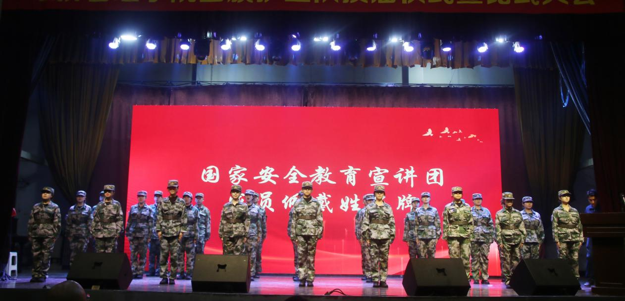 国家安全教育教研室主任高永芳为第一届国家安全教育宣讲团干部颁发聘书,宣讲团骨干成员为新成员佩戴姓名牌。团长赵佳欣表示要带领宣讲团全体成员坚定不移贯彻总体国家安全观,做党和国家可信赖的青春力量。