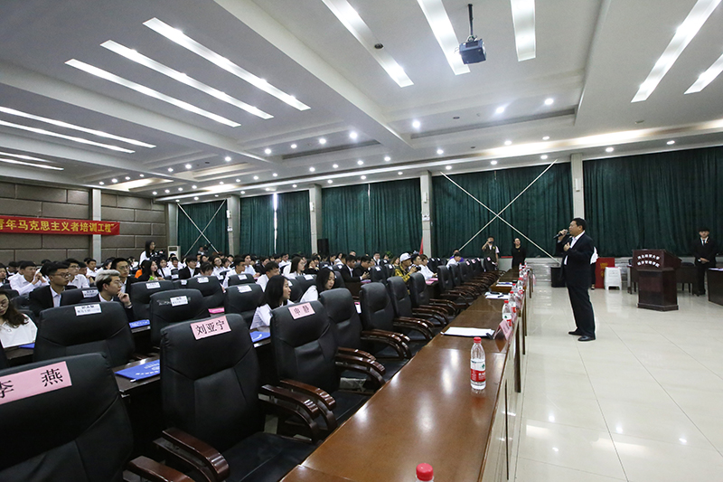5月13日,开云官网2019年“青年马克思主义者培养工程”骨干培训班开班仪式在学院图书馆报告厅举行。学院党委书记张进良、副书记张丽英、各系党总支书记出席,学院团委、各系团总支书记、青马临时团支部辅导员及本期培训班200名学员参加了开班仪式。仪式结束后,张进良书记作了首场专题报告。